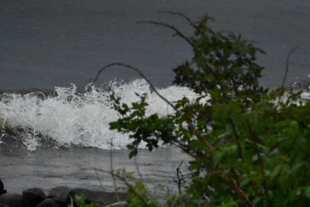 Instead, we stayed mostly inside. I sat at the window for a while, watching the rough water, trying to photograph three young loons bobbing in the waves. No luck. Embarrassingly bad photos. I also snapped a few shots of the lake, but nothing that made my heart leap or my shutter finger twitch with excitement.
