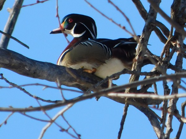 How about that? I have never seen a duck in a tree until today. This is a wood duck. I saw them wandering around and in the lakes last summer, but this is the first time that I have ever seen one in a tree. How cool is that? You can see how high up... Continue Reading →